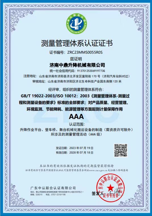 濟南中鼎升降機械有限公司位于液壓升降平臺之鄉山東濟南,是設計和制造液壓升降臺、高空作業平臺、液壓貨梯及其液壓升降設備的資深專家,更是當今世界物料垂直運輸設備供貨商的領跑者,多年來全心致力于為用戶提供更高效、更安全、更輕松的優質產品。公司擁有一支150人的高效團隊,其中工程技術人員30人,品管人員15人,資深技術工人80人。公司開創前期一直從事外貿代加工產品,多年來跟德國,日本等知名機械行業有著廣泛合作,年出口額1000萬美金以上,服務客戶遍及全球。近年來公司戰略調整,服務重心回歸...