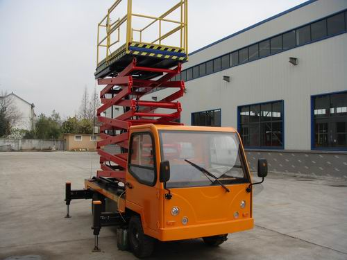 車載式升降平臺(tái)是由升降平臺(tái)和電瓶車或汽車配套改裝的高空作業(yè)設(shè)備。